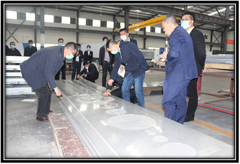 考察團一行還來到鈑金車間,了解產品制作工藝,不時駐足觀望、仔細聆聽,耐心聽從講解,不時詢問產品的銷路和用途。