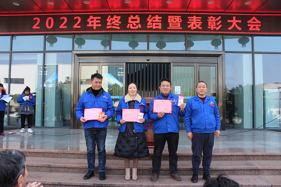2022年,在董事長的領導下,大家一起抗擊新冠疫情、一起接受連晴高溫的考驗、一起面對了“陽”的挑戰,在惡劣的環境中艱難前行,公司取得了較好的成績,同時也涌現出了一批兢兢業業、勤勤懇懇、努力工作的優秀團隊和優秀員工。在會上董事長親自為他們頒發了獎狀、榮譽證書和獎金,以資鼓勵。