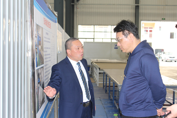 公司董事長藺勇向考察團介紹了公司發展歷程、主要經營產品并重點介紹了鋁單板、蜂窩板的制作工藝特性和用途。