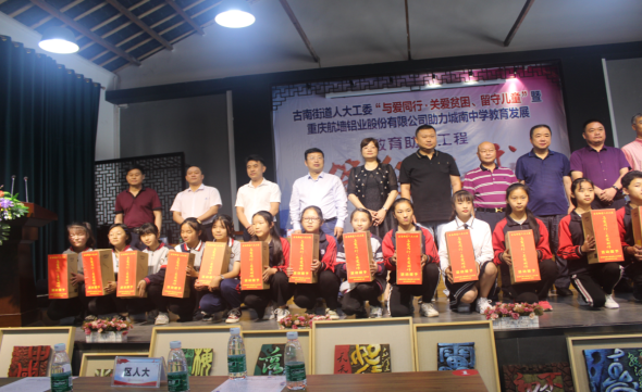 6月18日,在古南街道人大工委“與愛同行﹒關愛貧困、留守兒童”暨重慶航墻鋁業股份有限公司助力城南中學教育發展教育助力工程簽約儀式上,重慶航墻鋁業股份公司助力綦江城南中學教育發展正式簽約,董事長藺勇榮幸受聘綦江城南中學“名譽校長”職務。